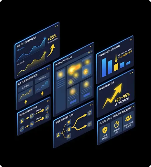 Skylift’s CRO methodology combines rigorous data analysis, user behavior insights, and systematic testing to unlock your website’s revenue potential. We don’t just run random A/B tests — we develop comprehensive optimization strategies based on real user data and proven psychological principles that drive action.