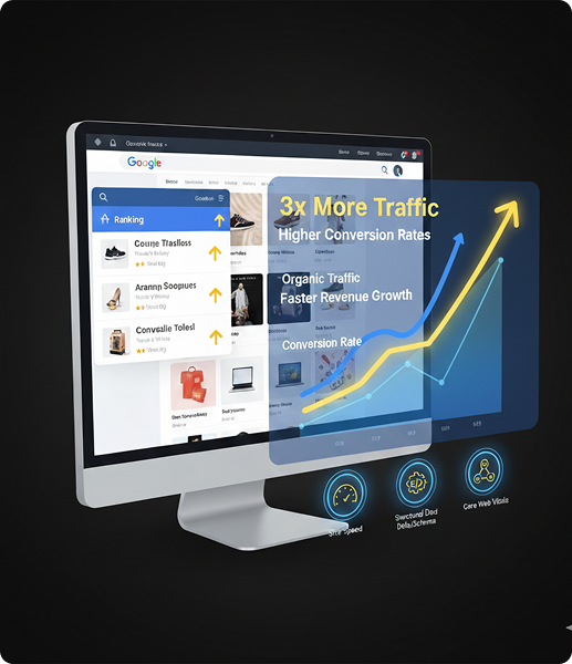 We optimize every element of your Shopify store – from product pages to technical architecture, driving 3x more organic traffic that actually converts into sales.